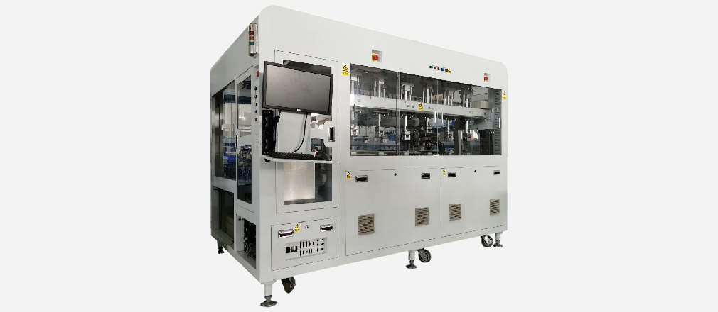 是我司自主研发、制造的高性能、高稳定性、高产出的系统级平移式测试分选机。人工将装有IC的JEDEC Tray放入到设备里,设备作业时会通过移载吸取模组,将IC从Tray上吸取,放置到设备的测试基座里进行测试。测试的环境有常温、高温、低温。待测试完成后,根据测试结果将IC放置到OK或NG的Tray上。人工取出Tray。